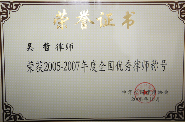 吴哲律师现任辽宁省律师协会常务理事,鞍山市律师协会副会长。由于吴哲律师努力工作,他先后获得全国优秀律师(2005-2007);辽宁省首届十佳律师(2008年);辽宁省优秀党员律师;辽宁省司法厅文明律师;第一届、第二届鞍山市十佳律师(1997、2007)等荣誉称号。