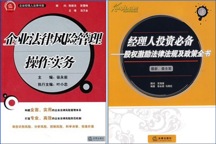 徐永前律师还担任《商法实务系列丛书》主编,《改制分流一百问》副主编,国务院国资委《企业国有产权转让操作指南》编审,《打造世界一流企业法律保障研究》等多项课题负责人,北京市人民政府《企业改制上市操作指南》编委(负责律师篇工作),并编著《企业法律顾问资格考试》(公司治理法律实务篇)。著有《企业法律风险管理操作实务》、《经营者持股与股票期权计划的规范设计》、《职工持股制度和主协调律师制度》、《风险投资法律实务》、《BOT项目融资法律实务》等;律师实务论文曾连续多次获国家或省部一等奖。